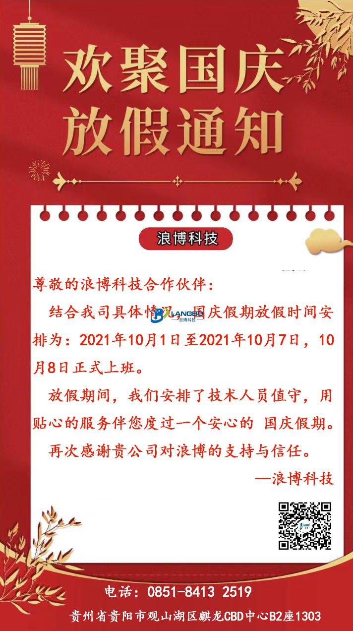 放假期間,我們安排了技術(shù)人員值守,用貼心的服務(wù)伴您度過(guò)一個(gè)安心的國慶假期。再次感謝貴公司對浪博的支持與信任。